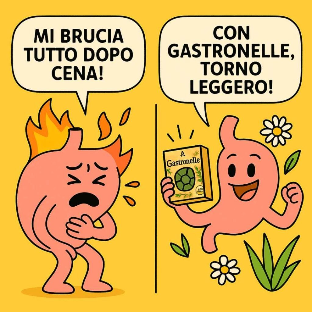 “Avevo provato di tutto, anche omeprazolo ogni giorno. Con le Gastronelle ho finalmente trovato sollievo, soprattutto dopo cena.”